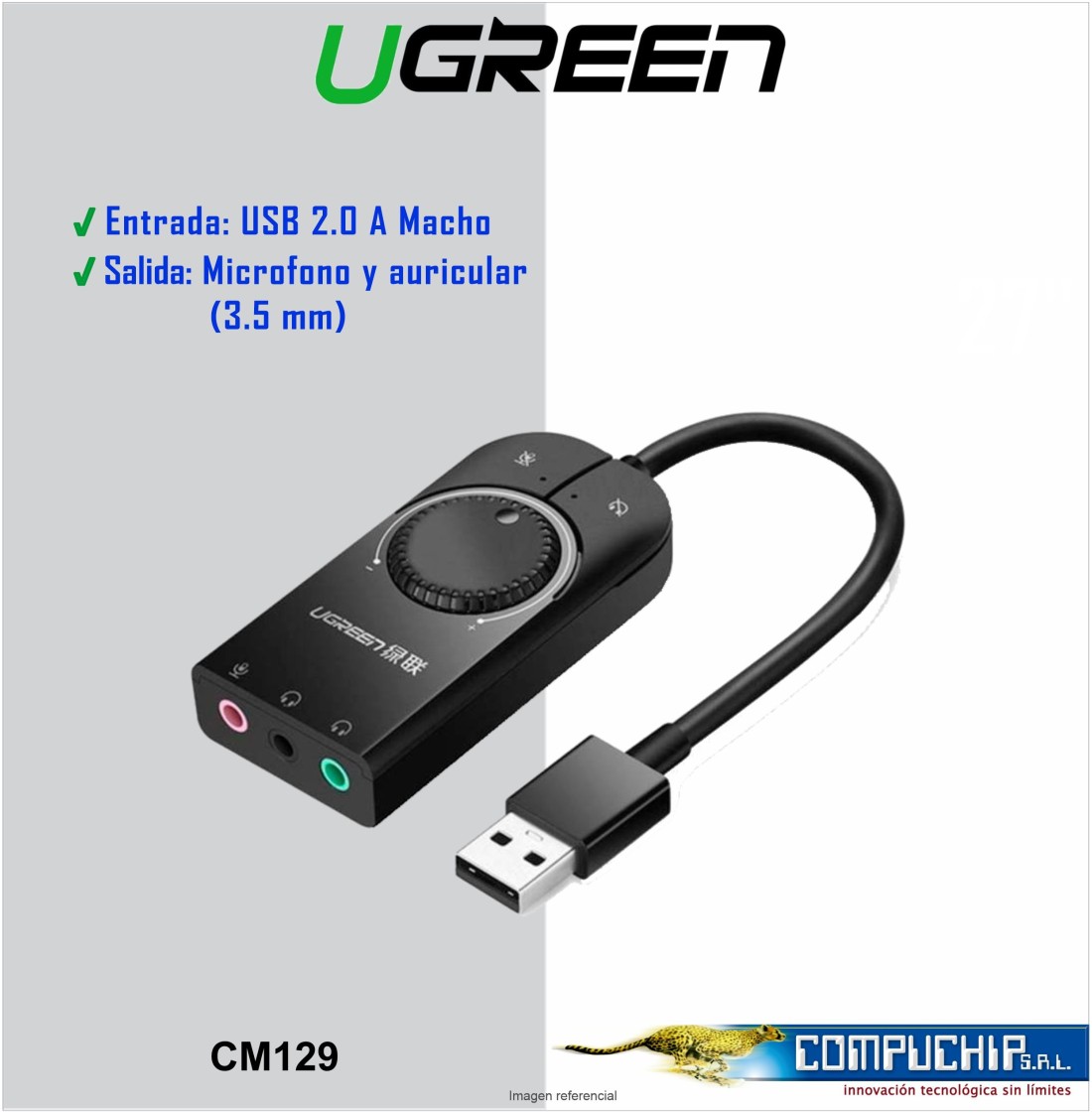 Adaptador de USB a sonido estéreo externo y micrófono UGREEN CM129