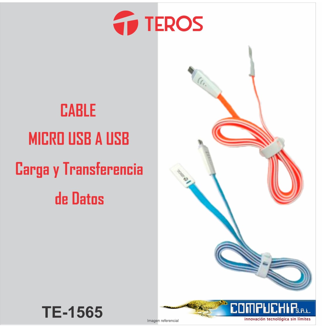 CABLE MICROUSB A USB CARGADOR Y DATOS TEROS TE-1565, LUZ LED.