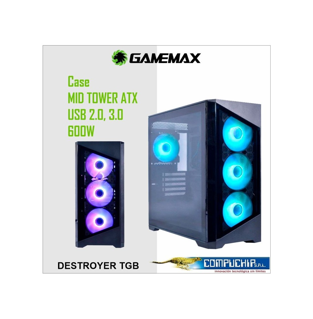 CASE GAMER GAMEMAX CON FUENTE DESTROYER TGB