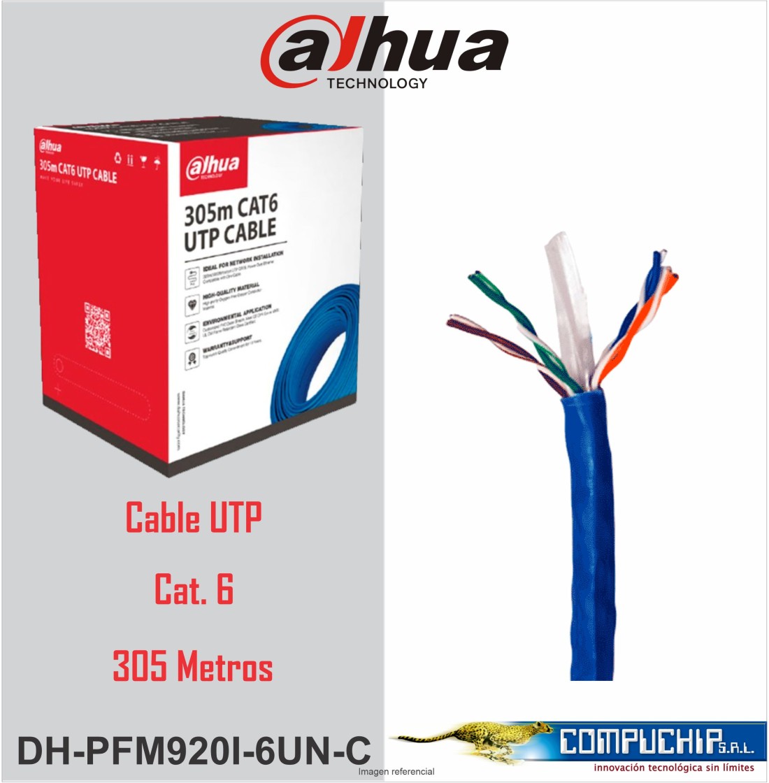 CABLE UTP CAT6 23AWG COBRE 305 M AZUL /DH-PFM920I-6UN-C/ DAHUA