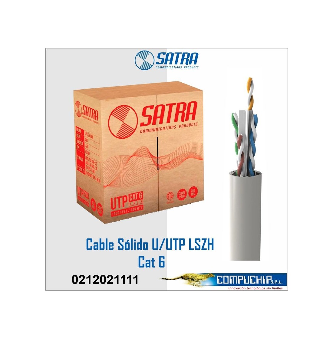 CABLE SÓLIDO U/UTP LSZH CAT. 6, SATRA, 305 METROS