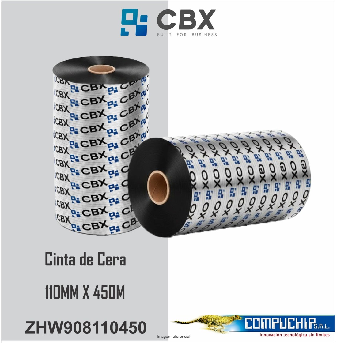 CINTA CBX DE CERA 110MM X 450MTS, NEGRO