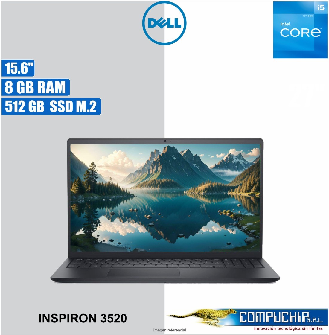 Notebook Dell Inspiron 3520, 15.6" FHD IPS, Core i5-1235U hasta 4.40GHz, 8GB DDR4 SO-DIMM