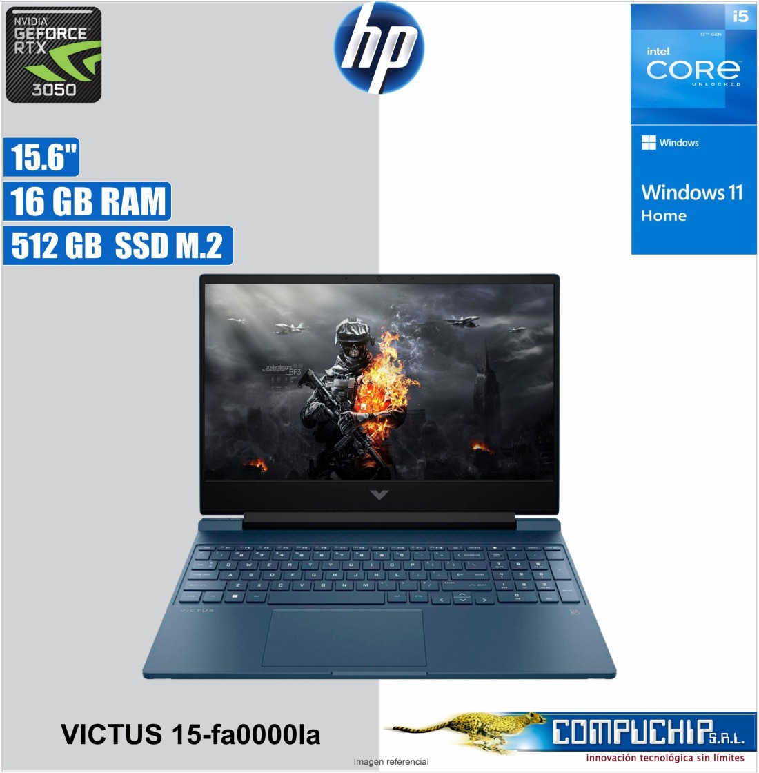 Notebook HP Victus Gaming 15-fa0000la 15.6" FHD IPS Core i5-12450H hasta 4.4GHz 16GB DDR4