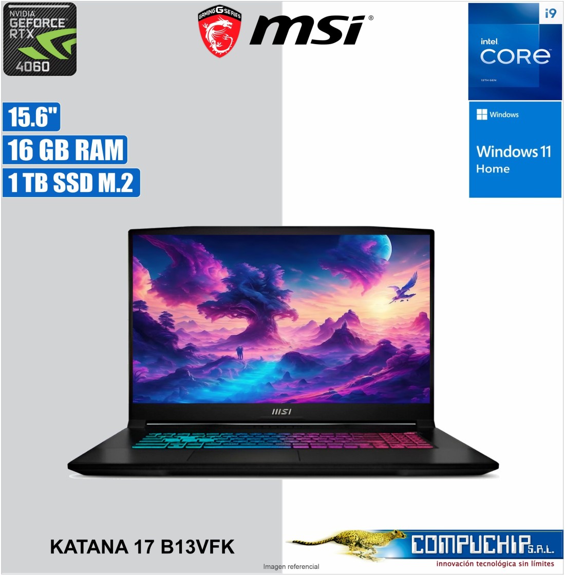 Notebook MSI Katana 17 B13VFK 17.3" FHD IPS Core i9-13900H hasta 5.40GHz 16GB DDR5-5200MHz
