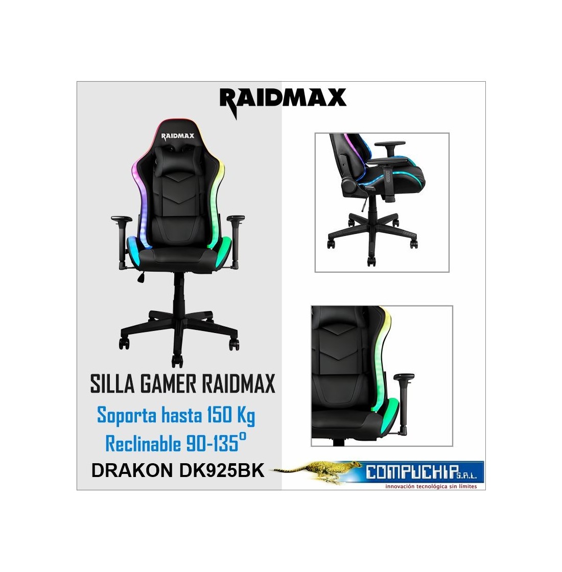 SILLA GAMER RAIDMAX DRAKON DK925BK ARGB NEGRO