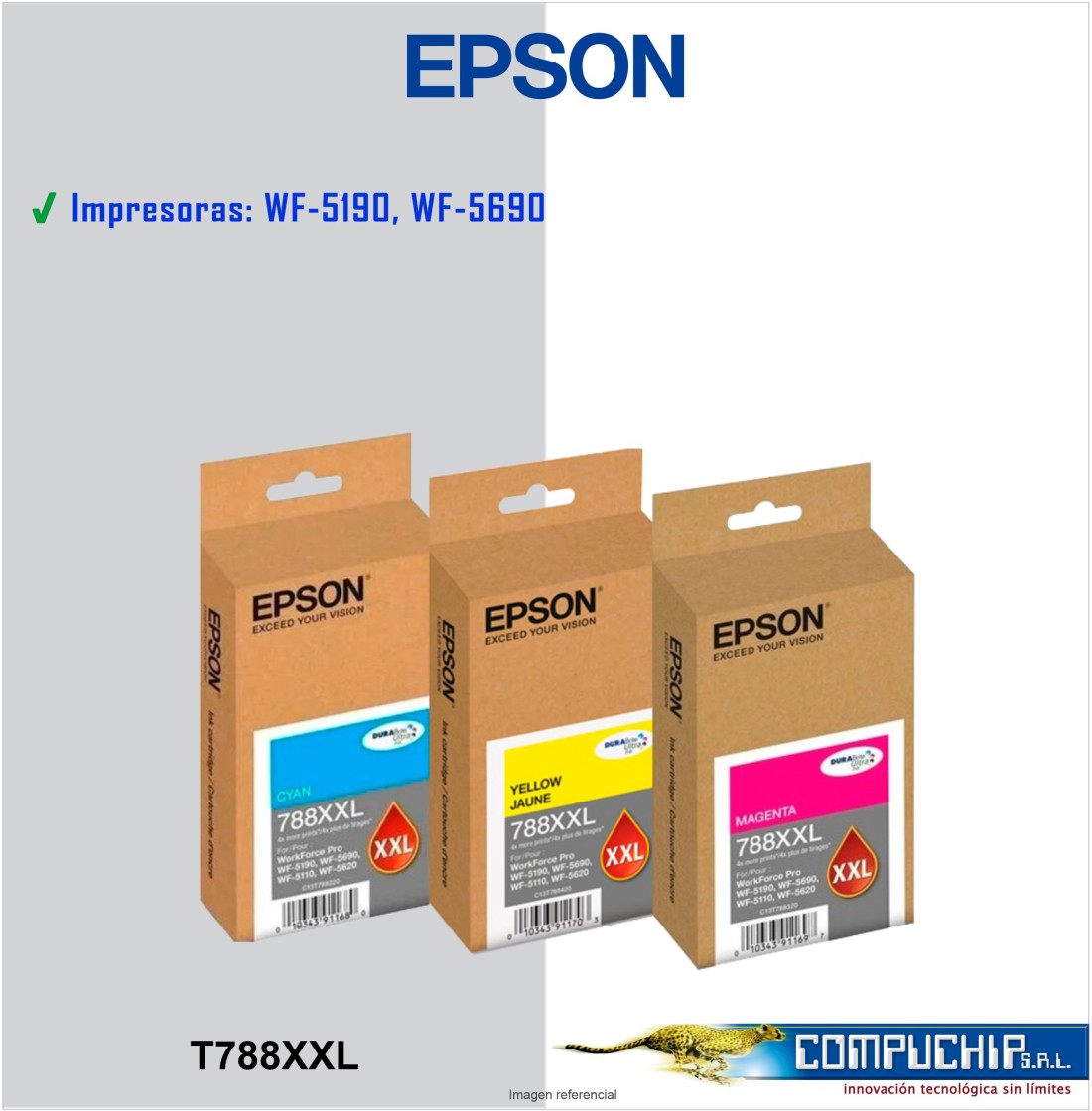 CARTUCHO DE TINTA EPSON T788XXL, DURABRITE PRO AMARILLO, MAGENTA, CYAN, 34ML.